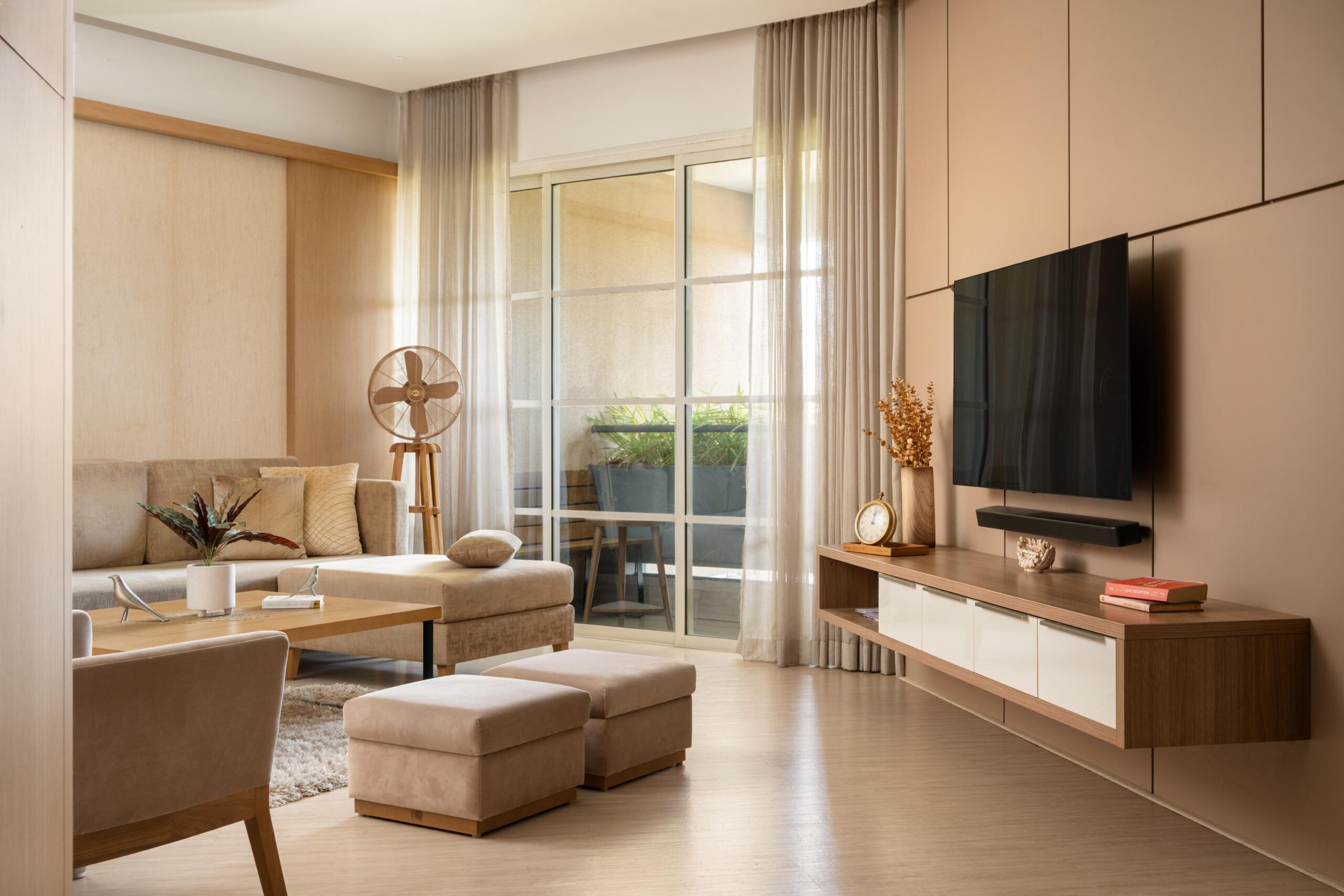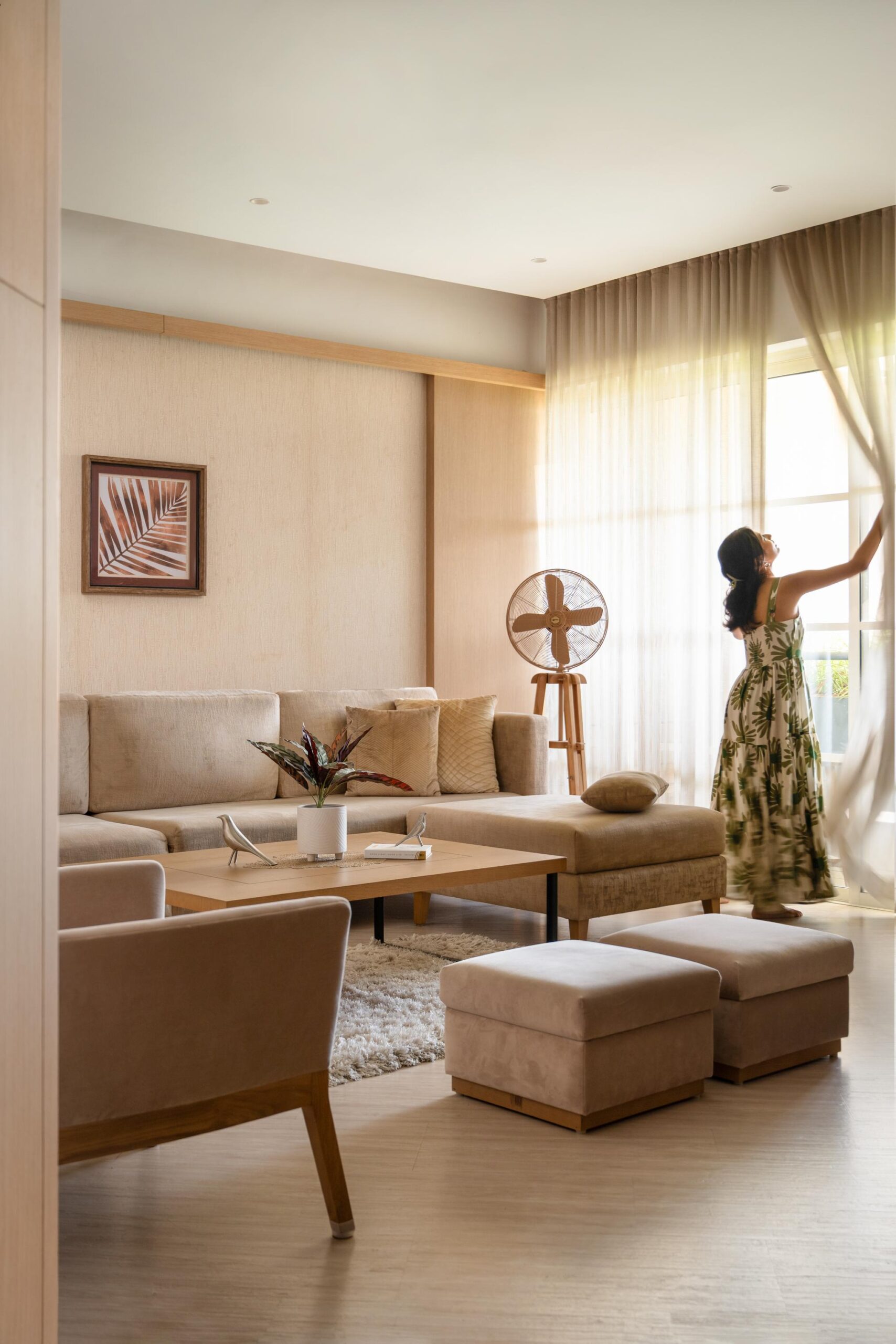 This apartment was envisioned as a second home for Jibu and Elsa, who wanted a space that would feel like a holiday escape while also functioning as a sophisticated city residence. The brief was clear: the interiors needed to reflect the luxury of a five-star hotel while retaining the warmth and functionality of a family home. With this in mind, the design process began with a complete **reconfiguration of the civil layout provided by the builder.