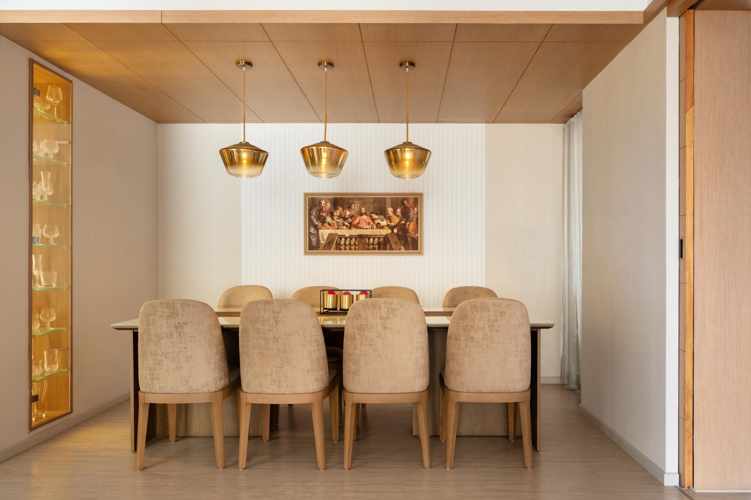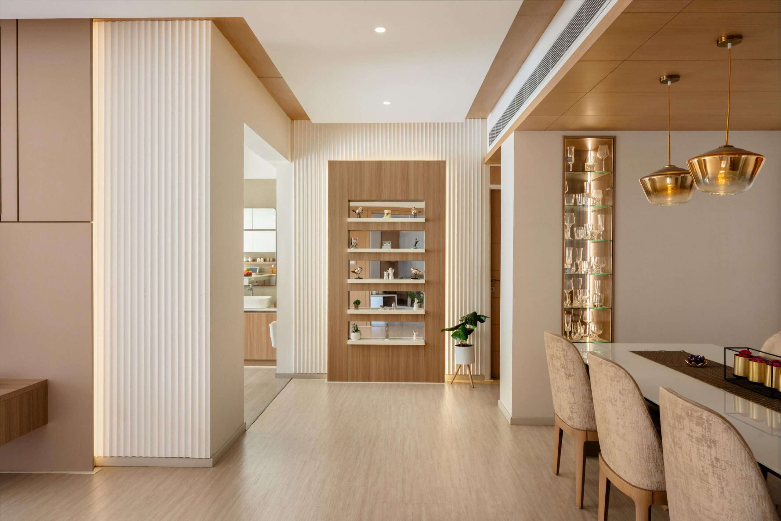 One of the main challenges was the spatial circulation. The typical apartment plan felt restrictive, so the flow was entirely re-imagined to achieve a sense of openness. The dining and family living areas were planned to maximize spaciousness and connection, creating a central core for both family interactions and entertaining guests. To accommodate this, the old kitchen was transformed into a stylish pantry with a breakfast table and wash area, while the original work area, servant’s room, and toilet were merged into a large, modern kitchen**—designed not only for functionality but also as an inviting hub for family gatherings.